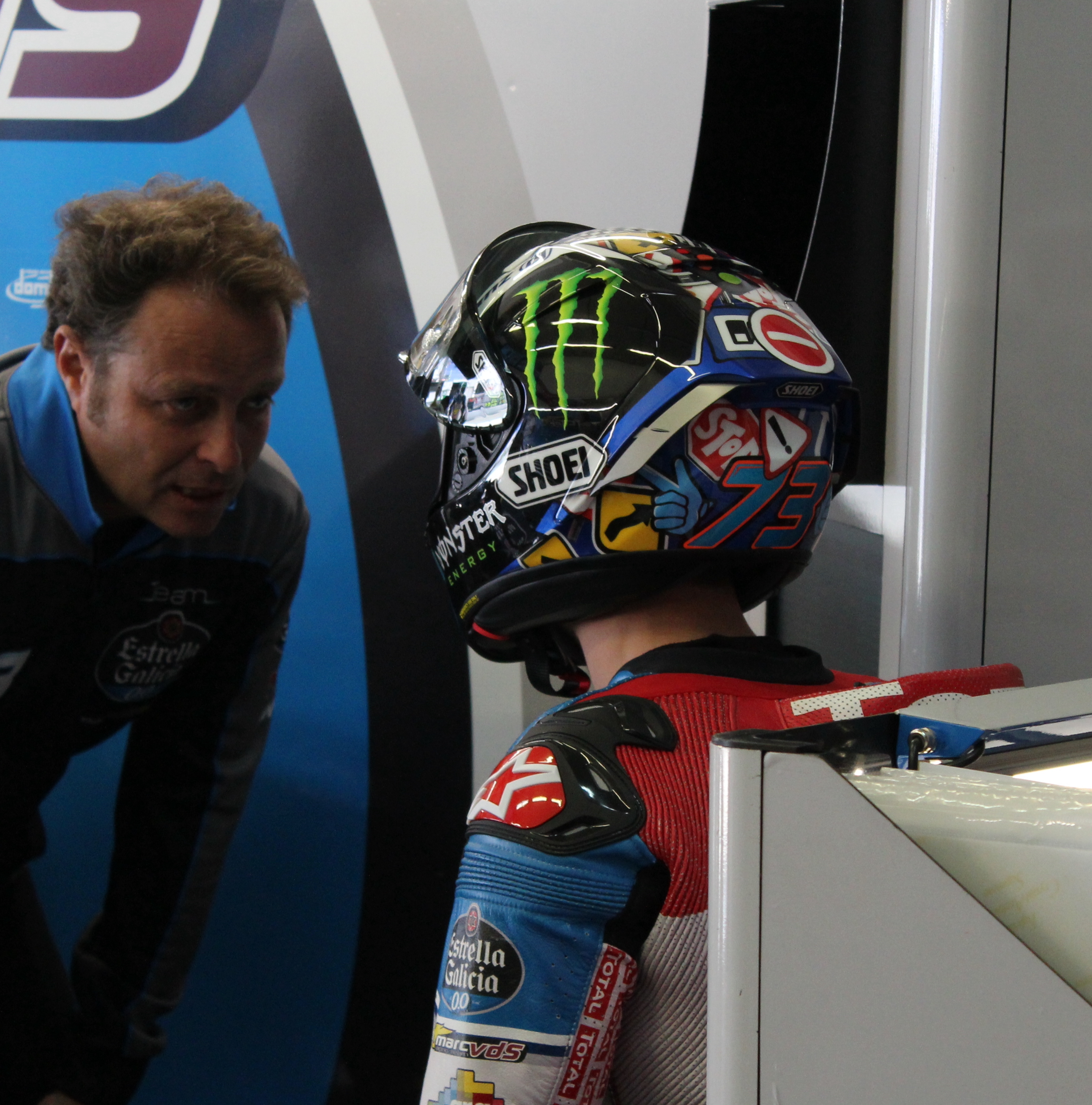 “El piloto de Cervera dejará de lado la característica bala que decora su casco durante un fin de semana y la cambiará por un collage de señales de tráfico y una carretera que simula algunas curvas del circuito de Jerez. Así es el diseño con el que Anna Fuentes, una joven de 20 años de Terrassa (Barcelona), consiguió ganar el concurso que el piloto organizó junto con Allianz Seguros. Su diseño fue el elegido por Alex Márquez entre los más de 100 que se recibieron. Como premio ha recibido dos entradas para acudir al GP de Jerez, alojamiento y una réplica del casco con su diseño, que le ha entregado el propio Alex Márquez hoy tras los entrenamientos de la mañana en el propio circuito.”